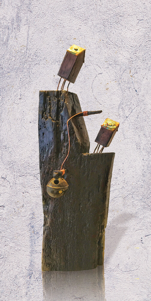 Wood, copper, steel, found and recycled objects.